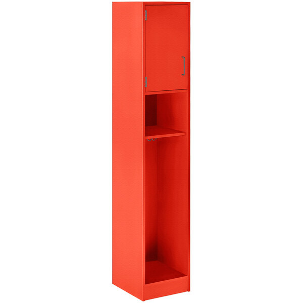Provide a convenient and functional storage solution for employees or students with this I.D. Systems 16" x 18" x 84" tulip red single upper door storage locker with adjustable middle shelf 79024 C16 043! This specific model features an attractive tulip red matte finish, making it ideal for break rooms, schools, or employee centers. It is constructed of durable 3/4" thick components with thermofused laminated faces and impact-resistant edges to withstand frequent use. Plus, the laminate surfaces are scuff- and stain-resistant to maintain the locker's appearance.