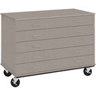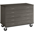 Provide a convenient storage solution for classrooms or offices with this I.D. Systems 24" deep graphite nebula five drawer mobile storage cabinet 80393F36057. This cabinet includes five full-width drawers on ball bearing slides that are perfect for organizing classwork or supplies. Each smooth-gliding drawer holds paper sizes up to 19" x 43". It is constructed with a durable 3/4" industrial grade wood composite core and features a damage-resistant laminate surface with impact-resistant edges to withstand frequent use. Plus, the non-porous surface resists stains and spills to maintain its appearance.