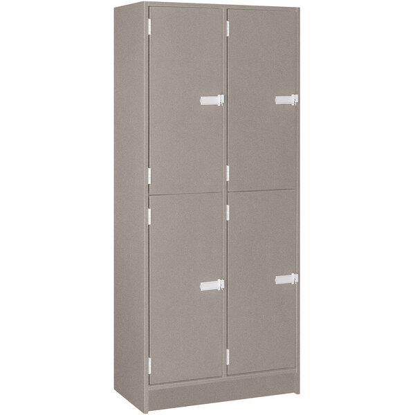 Provide a convenient and functional storage solution for employees or students with this I.D. Systems 30" x 18" x 72" gray nebula double door storage locker with middle shelf 79021 B30 059! This specific model features an attractive gray nebula matte finish, making it ideal for break rooms, schools, or employee centers. It is constructed of durable 3/4" thick components with thermofused laminated faces and impact-resistant edges to withstand frequent use. Plus, the laminate surfaces are scuff- and stain-resistant to maintain the lockers appearance.