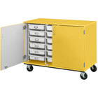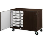 Provide a convenient storage solution for classrooms or offices with this I.D. Systems 36" tall gray nebula mobile storage cabinet 80275F36059. This cabinet includes (18) 3 1/2" trays that are perfect for organizing office supplies or classwork, and reinforced ribs prevent distortion under heavy weight. It is constructed with a durable 3/4" industrial grade wood composite core and features a damage-resistant laminate surface with impact-resistant edges to withstand frequent use. Plus, the non-porous surface resists stains and spills to maintain the cabinet's appearance.