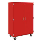 This cabinet has hinged doors that lock, preventing unwanted access. It can support up to 500 lb. of evenly distributed weight. It includes 5" casters that are specially designed to roll smoothly over thresholds or uneven surfaces. Additionally, the cabinet ships fully assembled with casters already attached and bins installed, so set-up is simple and easy.