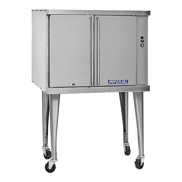 Cooking in your establishment will be easier than ever with this Imperial Range Elements Series convection oven. With precise snap-action temperature controls, this unit has a 150-500 degree Fahrenheit temperature range for maximum versatility when cooking or baking. The one-speed fan is powered by a 1/2 hp motor and features convenient switch controls that allow you to easily bake or roast various products. This convection oven features both productive air flow and fast temperature recovery.