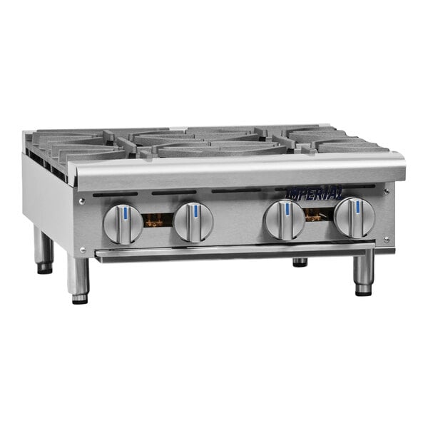 Upgrade your restaurant's cooking capabilities by adding this Imperial Range IHPA-4-24LP 24" liquid propane 4 burner hot plate to your commercial kitchen. With (4) cast iron burners, this unit allows you to cook four stock pots or fry pans full of product at the same time! Each 32,000 BTU burner is equipped with exclusive PyroCentric™ anti-clogging technology and is removable for easier cleaning. The burners feature two rings of flame for quick and even heating, as well as a low-simmer feature for versatility when cooking. Plus, each burner has a standing pilot light for instant ignition.