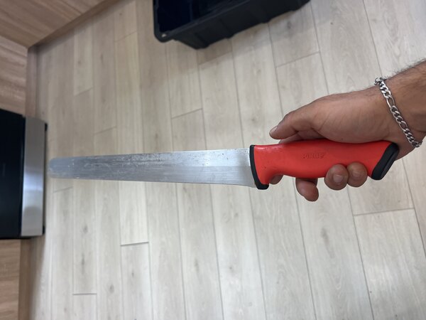 Slice thin strips of meat for your doner kebabs, shawarma, gyros, or tacos al pastor with this Inoksan 34112 22" manual gyro knife. With its smooth blade, this knife is perfect for slicing lamb, beef, or chicken! Designed to allow you the flexibility of cutting meat to any size you wish, this long knife is perfect for working with large skewers full of kebab or gyro meat!