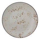 Create a fun and stylish tabletop presentation with this International Tableware Splash lunar blue stoneware coupe plate. This plate features a comforting lunar blue color with a festive splash of brown. Its stoneware material is durable and designed to withstand the wear and tear of everyday use. This material is fully vitrified and can be used to warm food in the oven up to 350 degrees Fahrenheit. This plate is great for signature dining applications in both formal and casual restaurants and hotels.