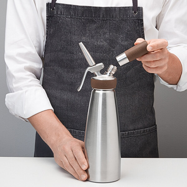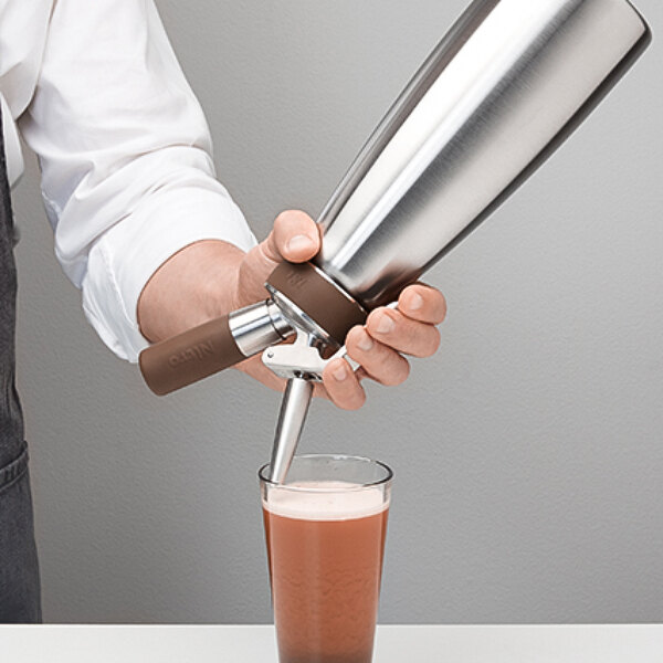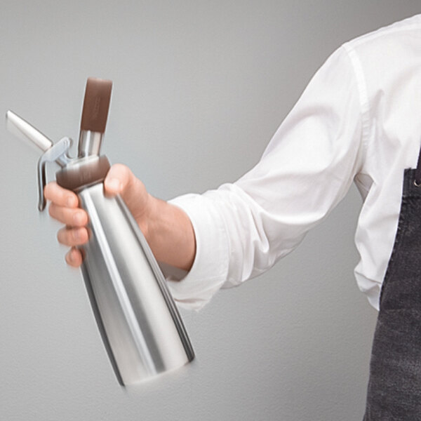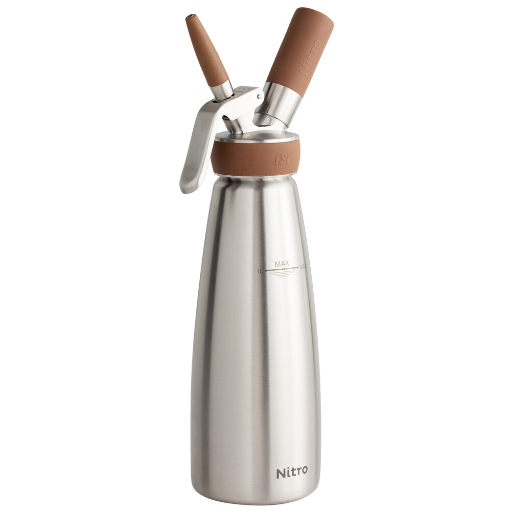 Featuring a brown, silicone grip, this dispenser is easily distinguishable from your existing ISI Whippers, so as not to confuse the contents or proper charger. The brushed, stainless exterior gives this dispenser a classy look - making it great for both back of house and front of house use. This unit is easy to use, clean, and makes creating delicious nitro-infused beverages a breeze!