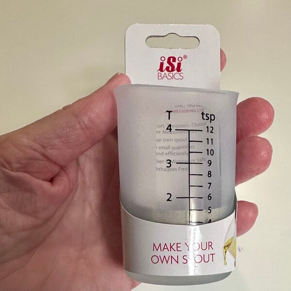 This flexible silicone mini measuring cup is exactly what I was looking for! It includes measurements for teaspoons, tablespoons, ounces, and milliliters, and is easier and less messy to use. Plus its microwave and dishwasher safe. Came packed nicely as you can see in the picture.