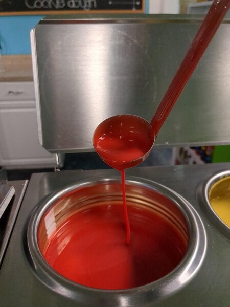 Our customers love the JHS Cherry Cone Dip. It covers nicely, the taste is bold but not overpowering, and the color is vibrant. All it takes is for one customer to order it and other customers have to have one too. It takes a little practice to make sure your ice cream is packed into the cone well to make sure it doesn’t fall off. I’m so glad we added this to our menu.