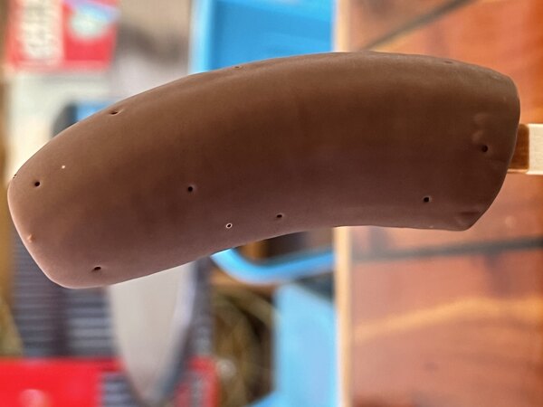 This waffle cone enrobing chocolate is easy to melt and dipping ice cream sandwiches, waffle cones and bowls is easy. It doesn’t set up too quickly so you have time to add embellishments. I find it has an odd smell and I wish it set up shinier, but overall I’m pretty satisfied.
