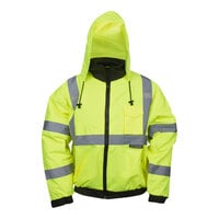 Stay warm and readily visible with this Cordova Reptyle bomber jacket. This jacket features a hi-vis orange color with 2" silver reflective tape across the chest and sleeves to keep crew members visible and safe while on the job. It is both waterproof and wind-resistant to withstand and protect against the elements. It features a polyurethane-coated, 300-denier polyester shell that repels water, and it has double-stitched and taped seams for a durable construction. This 2-in-1 jacket has a zip-out fleece lining that can be worn on its own or zipped into the bomber jacket. This Class 3, Type R jacket is perfect for roadway occupational use, and it maintains compliance with ANSI/ISEA 107-2015 standards.