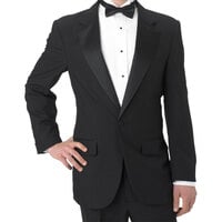 The single breasted design and closed rear vent of this jacket make it easy for your staff to maintain that desired sharp, clean look. The jacket also has 1 welt chest pocket, 2 side flap pockets, and 1 deep inside breast pocket that are perfect for keeping bottle openers and other items handy. Pair this tuxedo jacket with a Henry Segal shirt and bow tie (sold separately) to create a professional, uniform look for your wait staff. This black polyester jacket is a women's size 02.