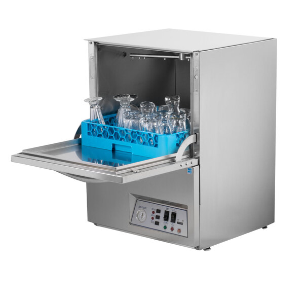 Keeping your dishes and glasses clean is essential to the life of your business, and thanks to this durable unit, you can successfully clean up to 24 racks per hour with 1.16 gallons of water per rack! This ensures that you'll always be able to keep up with peak hours of service at your establishment. This unit requires a 115V electrical connection for operation.
