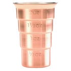 Prepare the perfect cocktail with this Barfly® M37109CP 2 oz. copper-plated stepped jigger. Its unique stepped design features graduated marks at .5 oz., 1 oz., 1.5 oz., and 2 oz. on one side and 15 mL, 30 mL, 45 mL, and 60 mL on the other so that you can accurately measure ingredients to prepare specialty cocktails, coffees, and sodas. The flared top edge adds strength and helps to keep pouring simple and mess-free.
