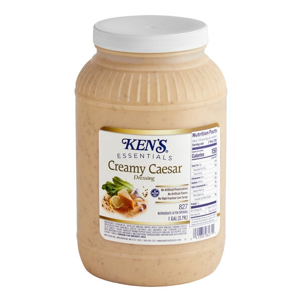 No artificial flavors, artificial flavors, or high fructose corn syrup, Ken's Feeds Creamy Caesar Dressing will delight Caesar Salad lovers everywhere. The convenient gallon jar makes it a perfect offering for salad bars and is also convenient for back-of-house use. Your guests will appreciate you when you offer them the very best.