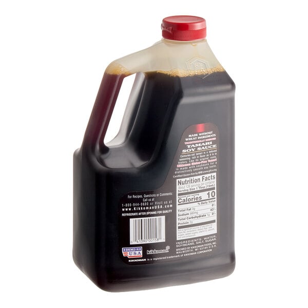 Stock your Asian-inspired restaurant, noodle restaurant, or cafe with this .5 gallon container of gluten-free tamari soy sauce. It features a convenient handle for pouring and transporting, as well as a resealable cap to keep the product fresh.