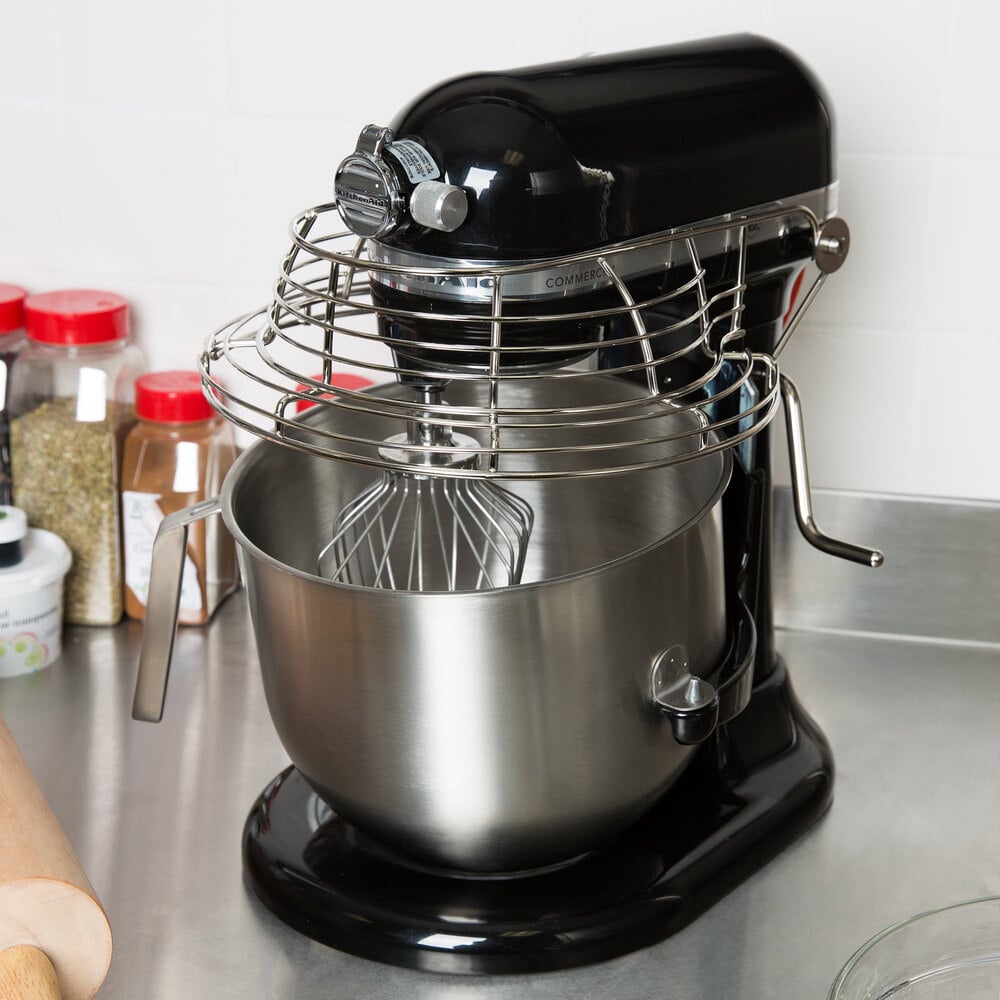 Perfect for small or large mixing tasks, this 8 qt. mixer can handle up to 16 cups of flour at a time! For added versatility, this commercial countertop mixer comes with an 11-wire whip, flat beater, spiral dough hook, bowl, and bowl guard, all constructed of durable dishwasher-safe stainless steel. It comes standard with a stainless steel wire bowl guard that lifts up to allow access to the bowl and then settles over the bowl to keep hands, spatulas, and anything else from accidentally coming into contact with the attachments while the mixer is in operation.
