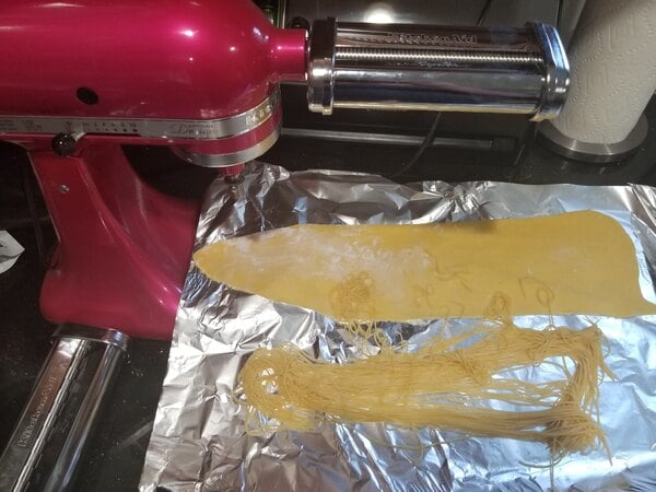 These cutter brought back memories of making pasta with my aunt with her hand-cranked machine. With these attachments, though, I have enough hands to make it on my own. If you aren't used to making pasta and find that your dough isn't cutting completely, your dough might be a bit wet. Dust on some extra flour.