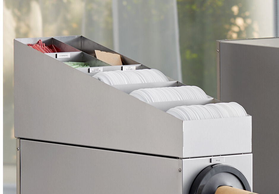 For added convenience, this dispenser is compatible with the ServSense lid / straw / condiment organizer (sold separately), allowing lids, straws, and condiments to be kept neatly organized on the same unit.