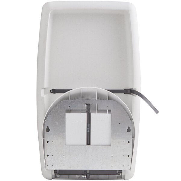 Adding to the benefits of this changing station, the smooth, concave surface provides comfort for your customers' little ones, and makes it easy to clean. Additionally, the Microban® antimicrobial surface resists odors and reduces the spread of germs and illness, and the large built-in liner dispenser holds up to 50 bed liners for additional cleanliness.