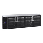 Krowne BS108L-GSS-LRLR 108" Black Glass Door Back Bar Refrigerator with Stainless Steel Top and Left Side Compressor
