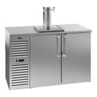 With a compressor on the left side and a condensate evaporator pan included, this self-contained unit requires no drain, saving you time and hassle. The heated mullion minimizes condensation, while the included 1/2" drain line exits the bottom front of the refrigeration compartment for easy access. The bottom of the unit features pre-drilled holes for optional leg or caster installation (not included). Ideal for busy bars and restaurants, this kegerator beer dispenser is a reliable and efficient addition to any establishment! It includes an 8 ft. power cord than can exit through the left or right rear of the unit and requires a 115V electrical connection for operation.