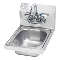 Keep your kitchen clean with this Krowne wall-mounted hand sink and faucet. Crafted from durable 20 gauge stainless steel, this sink is built to withstand the demands of a busy commercial kitchen. The single deep drawn 12 1/2" x 9 3/4" x 5 5/8" sink bowl features a stamped rim to prevent spillage and a 1 1/2" drain, making it easy to keep the sink clean and free of debris. With a backsplash, this hand sink helps keep your establishment safe and clean by preventing water from splashing onto surrounding surfaces.