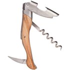 Handcrafted in France, this Laguiole Millesime Corkscrew with Genuine Olivewood Handle 3346 is built with the expert sommelier in mind. This corkscrew features an authentic olivewood handle. A built-in stainless steel straight blade knife effortlessly cuts through foil, while a stainless steel open spiral worm with filet running down it is designed to cut into the cork more quickly for rapid service of your most popular wines.