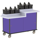 This Lakeside 70550B black Condi-Express 6 pump dual height condiment cart offers versatility and easy of sanitation in a convenient, mobile cart! Use this cart in your cafeteria or school lunch room to provide all of your customers' favorite condiments in one accessible spot.
