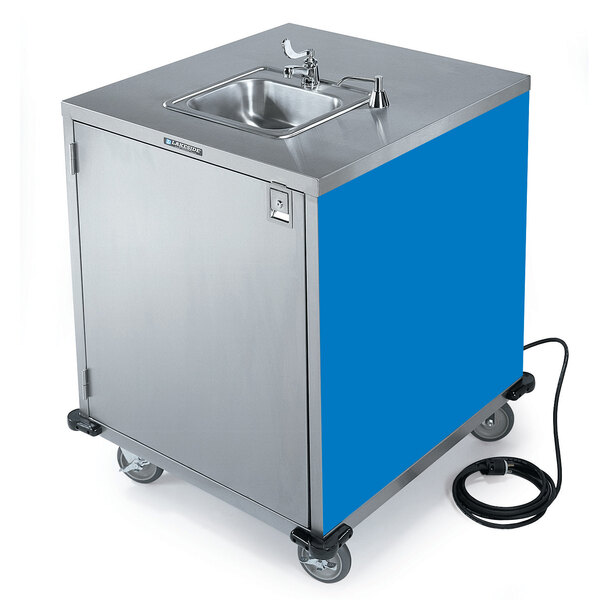 Lakeside 9600BL Portable Self-Contained Stainless Steel Hand Sink Cart with Cold Water Faucet, Soap Dispenser, and Royal Blue Finish - 115V