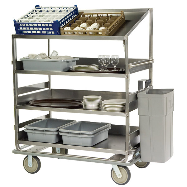Lakeside B591 Stainless Steel Soiled Dish Breakdown Cart with 3 Flat Shelves, 1 Angled Shelf - 51 7/8" x 30 7/8" x 69 1/4"