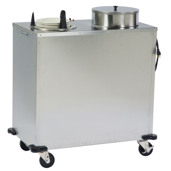 This Lakeside E6209 enclosed stainless steel heated two stack plate dispenser is perfect for use in the front of the house or back of the house to make sure that you have plenty of clean, warm plates right where you need them. It's ideal for busy foodservice environments such as buffets, cafeterias, and catering events, making it a versatile and reliable solution for maintaining the quality and presentation of your dishes. Upgrade your plate distribution system with this high-quality, efficient plate dispenser from Lakeside.