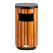 Keep your outdoor area clean with this Lancaster Table & Seating 11 gallon steel / wood composite round outdoor trash can. This trash can is made of extremely durable galvanized steel and wood composite. The wood composite slats offer an attractive, natural look. Plus, they're easy to clean for a convenient, low-maintenance solution.