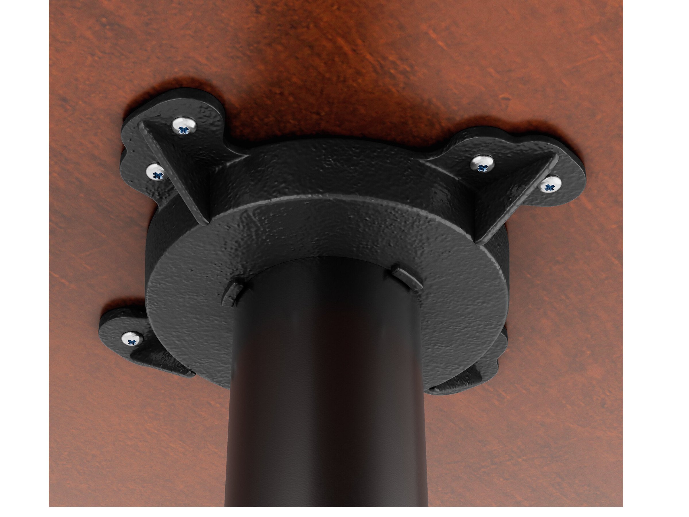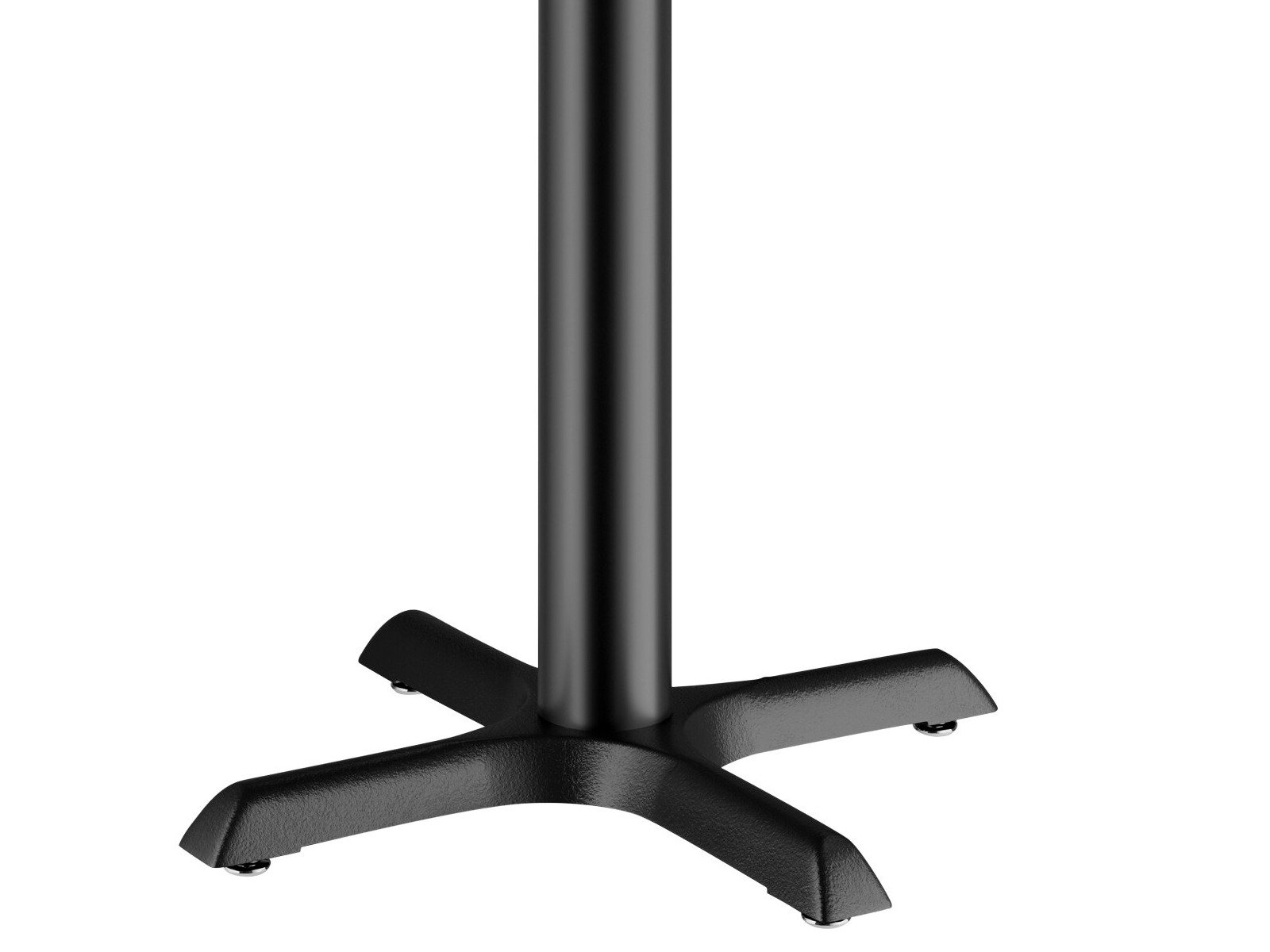 A black powder-coated steel column and rod extends the table top to bar height and is connected to the table top via a black, powder-coated 10" spider attachment that resists damage.