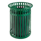 Lancaster Table & Seating 36 Gallon Heavy-Duty Round Green Steel Slatted Outdoor Trash Can with Flat Lid