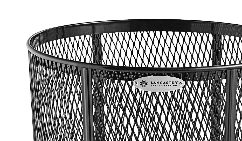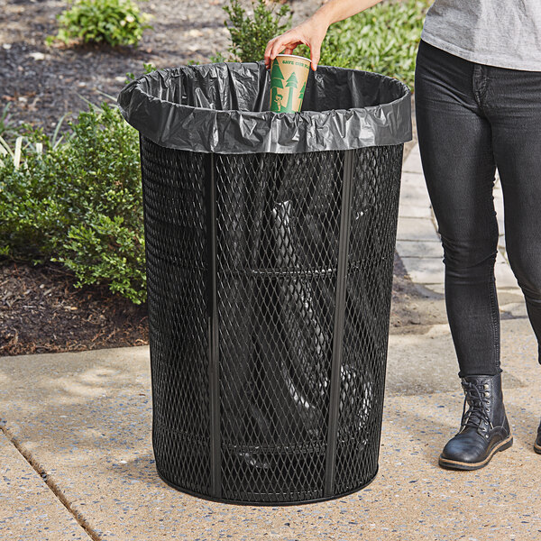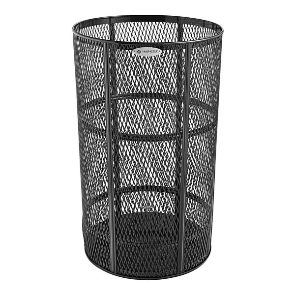 Lancaster Table & Seating 48 Gallon Heavy-Duty Round Black Steel Mesh Outdoor Trash Can