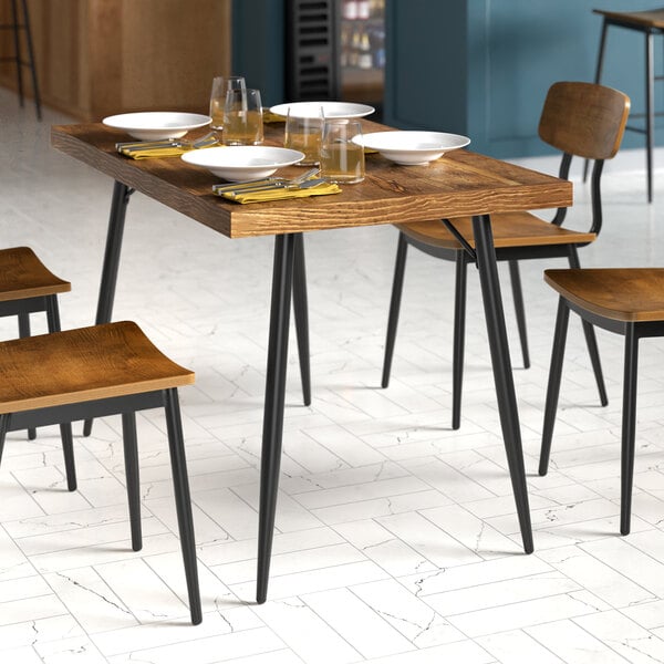 Add a unique and modern twist to your restaurant with this Lancaster Table & Seating Mid-Century 30" x 48" black standard height table base.