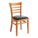 Seat your guests in comfort and style with this Lancaster Table & Seating natural finish wood ladder back chair with black vinyl seat.