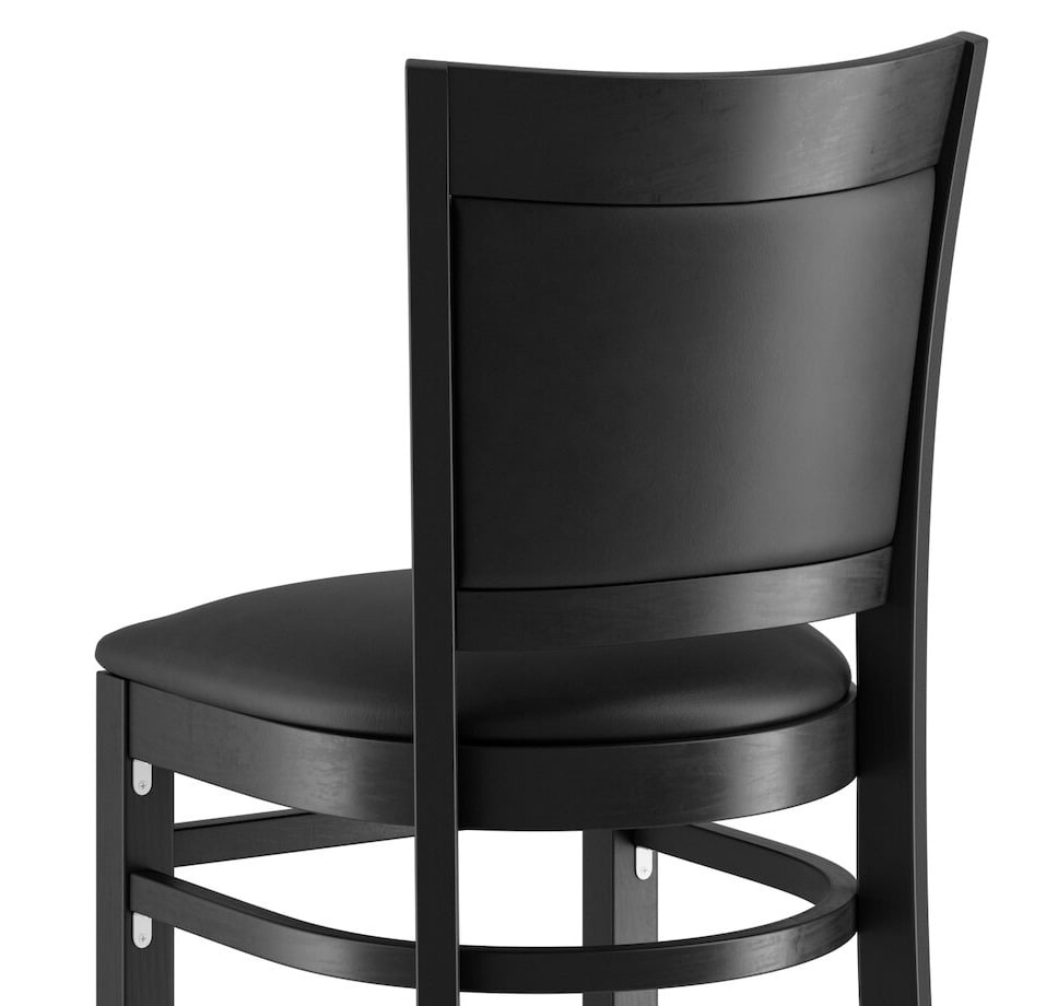 This bar stool's sturdy European beechwood frame provides unmatched durability and an impressive 350 lb. weight capacity. Beechwood stands up better to daily use and is able to better resist gouging and chipping compared to other types of wood. Additionally, the smooth surface on this bar stool provides a natural wood feel, while the elegant black finish offers the ultimate in style. Its reliable design ensures you'll be using this bar stool in your pub or restaurant for years to come!