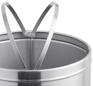 This bulky trash can hold a lot of trash. Yet, it’s sleek. Doesn’t mess with the atmosphere and it’s easy to replace the liners. We have washed it in the past and you’ll just have to wipe it dry for all the water won’t spill out. But still super easy.