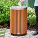 Lancaster Table & Seating 17 Gallon Steel / Wood Composite Round Decorative Outdoor Trash Can with Open Lid