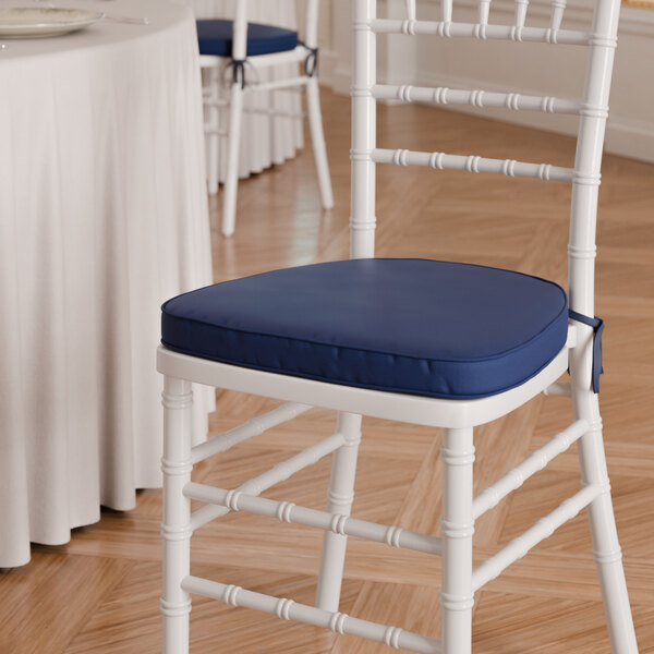 This cushion features a 2" thick polyurethane sponge interior to ensure that all guests are seated comfortably at any event. The attractive blue color enhances your event's decor, complementing the chair's upscale appearance. Give your event space an eye-catching, yet comfortable upgrade with this cushion.