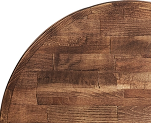 The butcher block style top highlights the natural beauty of different wood species. Beech, birch, pine, ash, and oak all contrast with one another, providing an attractive blend of grains and shades. With a vintage stain, each strip of wood accepts the stain differently, giving a uniform appearance while simultaneously allowing each unique species to stand out.