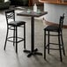 From the sturdy cast iron table base, to the unique wood tabletop, to the two comfortable cross-back bar stools, this all-in-one set is the perfect place for your guests to sit and share drinks or appetizers in your bar, bistro, or cafe. Your guests are sure to be amazed by this stylish, yet comfortable set, while you appreciate the functionality and safety it provides.