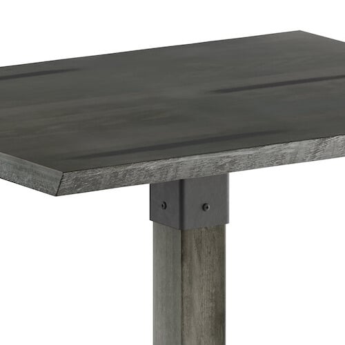 The slate gray finish highlights the distinctive woodgrain patterns and gives the set a unique aesthetic that can't be duplicated. With the perfect blend of warm and cool tones, this industrial set makes it easy to create an inviting and modern dining room your customers won't soon forget!