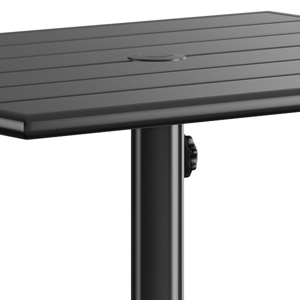 Designed specifically for outdoor use, this table makes an excellent addition to restaurant and bar patios and other outdoor entertainment areas. This lightweight table features adjustable feet and an umbrella hole for extra optional shade. For your convenience, this table is easy to assemble. With all hardware included, you can quickly set it up in its proper space for guests to enjoy.