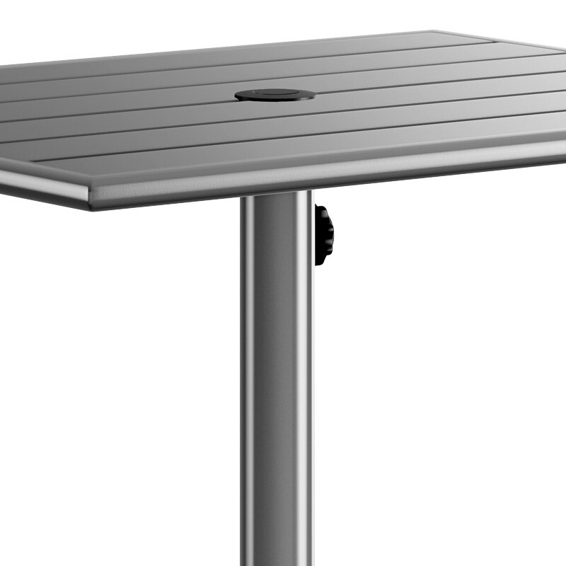 Made of strong, powder-coated aluminum, this corrosion-resistant table is built to withstand any weather conditions. Its smooth surface features a neutral gray color that's sure to match your decor and complement the summer skies and clouds! Thanks to its UV-resistant finish, the color won't fade over time even when left in the sun for longer periods. Enjoy this table's long-lasting durability for years to come.