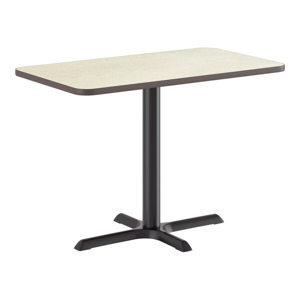 Take the guess-work out of selecting compatible table tops and bases with this 24" x 42" reversible white birch / ash table top and cross cast iron base plate. This table gives your establishment a modern look and provides your guests a stable place to comfortably enjoy their drinks and food! From the strong, sturdy cast iron base plate and spider, to the sleek black column and durable laminated table top, this table is an all-in-one addition to any establishment. Plus, with a contemporary rectangular shape, it's sure to add aesthetic appeal to any establishment, setting itself apart from traditional square or circular table layouts. The 24" x 42" design comfortably seats up to 4 guests without taking up too much room, making it the perfect choice for any restaurant, pizza shop, or cafeteria!