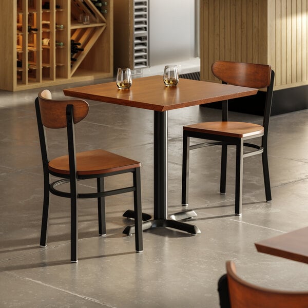 - Lancaster Table & Seating Industrial 24" Square Rustic Walnut Finish Solid Wood Live Edge Standard Height Table with 2 ChairsRated 3.5 out of 5 stars