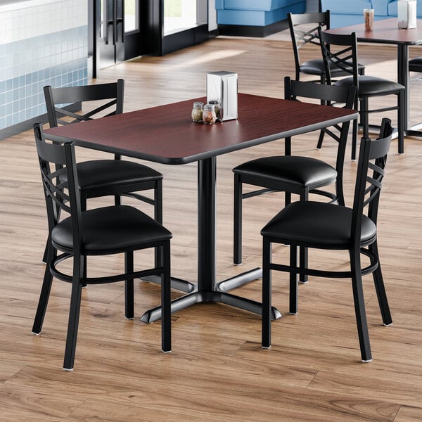 Lancaster Table & Seating 30" x 48" Reversible Cherry / Black Standard Height Dining Set with Black Cross Back Chair and Padded Seat