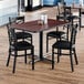 Take the guess-work out of selecting complementary tables and chairs by choosing this Lancaster Table & Seating 30" x 48" reversible cherry / black standard height dining set! This standard height table comes complete with everything you need to quickly and easily assemble a classic 4-top table. From the strong, sturdy cast iron base plate and spider, to the sleek black column and durable laminated table top, this table is an all-in-one addition to any establishment.